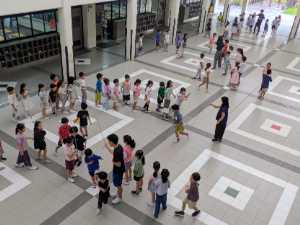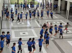 先日の避難訓練の折、私は子供たちに「避難の仕方は大縄跳びと同じである」と話しました。前の人との間隔を適切に保ち、全体の流れを意識することが、安全や成功に直結するからです。今日、必死に縄を跳ぶ子供たちの列を見たとき、前後間隔がしっかりと保たれた美しい曲線が描かれていることに深く感銘を受けました。一つ一つの活動が、安全意識や規律ある行動へと確実につながっています。