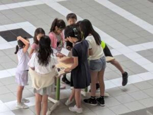 昼休みのエントランスホールに、人だかりができていました。近づいてみると、そこでは5年生による「リサイクルクレヨンプロジェクト」が行われていました。短くなって使いにくくなったクレヨンを全校から集め、一度溶かしてから丁寧に成形し、新しい姿に変えて持ち主に返却するという取組でした。