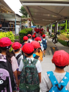 2年生は、生活科の学習活動として、町たんけんに出かけてまいりました。クレメンティウッズパークでは、木陰を歩く中リスや鳥を見かけ、散歩する人たちと同じように、自然の気持ちよさを感じました。ウェストコーストプラザでは、様々なお店の工夫に気付き、ウェストコーストマーケットやホーカーでは、にぎやかな売り場の様子や食べ物のにおいに、わくわくしました。コミュニティセンターでは、地域の人たちが集まる場所として、どのような施設や活動をしているのか知ることができました。探検を通して、人々の暮らしやつながりについて学べることがいっぱいあることに気付くことができました。