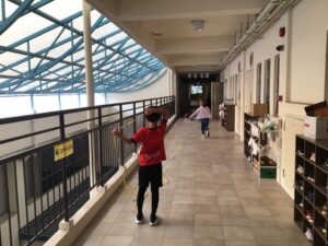 ろうかは何mだろう?教室の扉の高さは?など調べたいものを見つけて、自分で見当を立ててから実際に測定してみました。