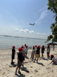東はChangi beach parkへ行き、飛行機が離陸するのを見ながらお弁当を食べました。学校の近くのウェストコーストパークの様子とはまた違うことに気づいている人もいました。