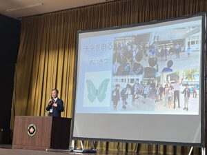 まず、今年度の重点「未来を創る~まなび、あいさつ、けんこうから~」を胸に頑張ってくれたおかげで、進んで「あいさつ」をする人が増えたこと、「まなび」の成果として音楽発表会では深い感動を与えてくれたこと、「けんこう」では大縄跳びで体力づくりに一生懸命取り組んだことなどを取り上げ、たくさんの思い出を胸に一学期を無事に終えることができると伝えました。