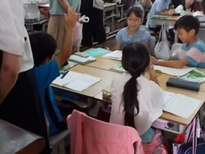子供達は普段とあまり変わりなく、学習を進めていたように思われます。グループ活動では、間近に話合いの様子をお聞きになられている様子も見受けられました。