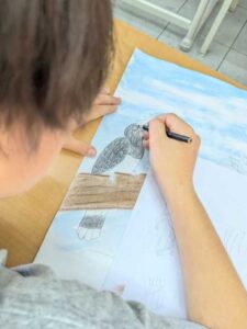 どの子供もシンガポールの風景や生き物等をどのように配置するのか深く考えながら取り組んでいました。一学期もあとわずかなので、この後は「夏休みの課題」へとつながっていくのでしょうか。