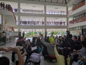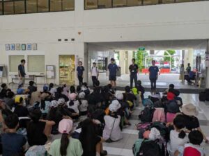 ここで驚いたのは、6年生が2階から5年生の出発式の様子を見守り、見送ってくれていたことです。学年を越えたつながりに感動。「いってらっしゃい」が響くチャンギ校は、やっぱり最高です。