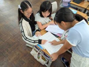 まずは、6年生の算数や国語の時間を参観いただいていますが、教科書の編集者の一覧に三井先生のお名前を発見し、子供達は大興奮。