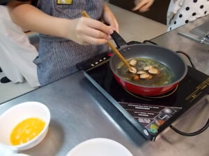 2025/05/26 チャンギ校授業の様子できることを増やして 6年生 6年生は、これまでに学習した「ゆでる」「ごはんの炊き方」「みそ汁の作り方」に続く、「いためる」調理実習を行っていました。 グループごとに相談しながら、とても楽しそうに活動していました。クッキングにおいても、できることが増えると自信が付きますね。