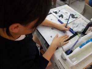 2025/05/21 チャンギ校授業の様子墨と水から広がる世界 6年生 6年生が水の加減や筆遣いに気を配りながら、墨で絵を描いていました。墨と言えば、習字の時間に毛筆を書いているわけですが、少々勝手が違うのようです。 素敵な絵が描けるようになると楽しいですね。