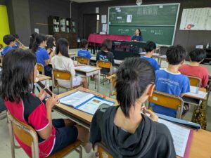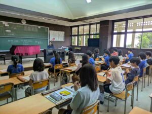 2025/04/28 チャンギ校授業の様子心をひらいて 心をこめて 音楽室からリコーダーの美しい音色が聞こえてきました。音楽の服部先生の電子ピアノに合わせて、どの子もリズミカルに演奏しています。特に高音の響きが美しく、一人一人の技能の高さが伺えます。 心をひらいて、心をこめて、歌ったり演奏したりしすることで、楽しい気持ちになってほしいと思っています。