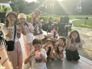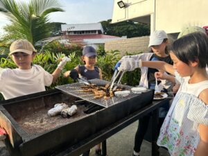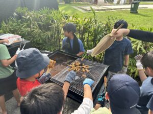 2025/07/15 チャンギ校学校行事BBQでお腹いっぱい 5年生5年生のキャンプは順調に進んでいます。楽しみにしていたBBQもお腹いっぱい食べることができました。自分達で焼いたとなると、なおさら美味しく感じるものです。 次は、キャンプファイヤーです。予報どおりの天候で、絶好のコンディションで迎えることができます。