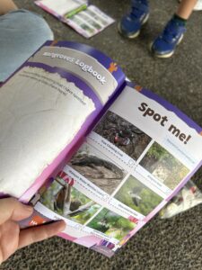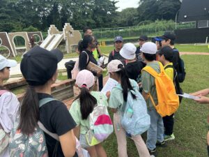 続いて、自然とのふれあいをテーマにしたミッションが発動されました。ブックレットに書かれているものを見付けにいく活動です。グループで力を合わせ、目標達成を目指してください。がんばって。