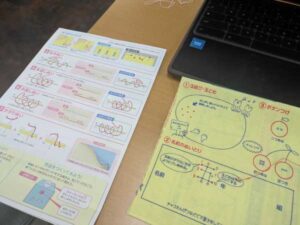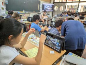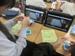 吉良先生がICTを活用し、子供達の手元のタブレットでもやり方が確認できるようにしてくれています。しかし、素早くできるようになるには、やはり繰り返し取り組むことが必要なようです。素敵な作品を作るためにも、この難関をまずは突破してください。