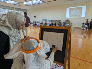 子供達は、Hari Raya Hajiに関するお話を聞いたり、ゲームやクイズをしたりしながら、日本と異なる文化や風習に親しんでいました。