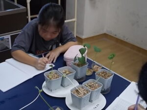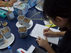 5年生は、今まで育ててきた植物の状態を比べ、種の発芽に必要な条件について話し合っていました。