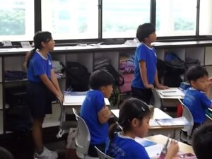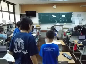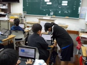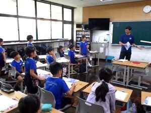 国語の授業をしばらく見ていましたが、発言においては「です・ます」といった語尾までしっかりと話すことが大切であること、「ですか」という問いかけに対しては必ず返答することなどの基本を押さえるところから始めていました。最後には宿題の話もありましたが、その進め方からなのか、子供から「面白い!!」という前向きな声も上がっていました。
