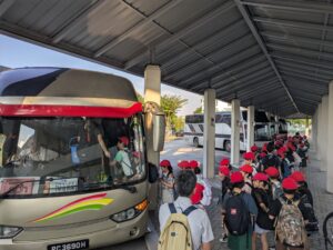 2025/06/20 チャンギ校学校行事いざ!SG探検に出発 4年生4年生が「シンガポール探検」に出かけていきました。出発式の様子を校長室前からずっと見守っていましたが、終始、立派な態度で先生や代表者の話を聞いていました。 行先は、リトルインディア・チャイナタウン・アラブストリート・カトンです。笑顔で手を振る子供達。ワクワクドキドキで一杯のことと思います。いってらっしゃい!
