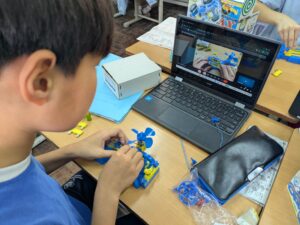今回は、「つなぎ方によってプロペラが回る速さがどのように変わるのか」確かめていました。よく見ると、土台が車の形をしていたので、最後にはプロペラカーとして走らせるのかもしれません。楽しみですね。