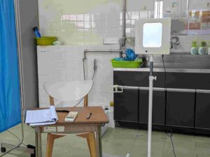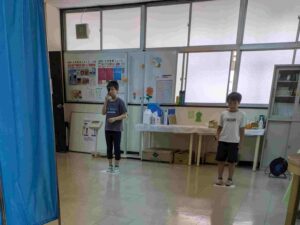 分からないということも含め、子供が答えた内容を手元の機械に入力すると、自動で結果が出ます。他の検診結果も含め、後日カードで個別にお知らせしますので、しばらくお待ちください。