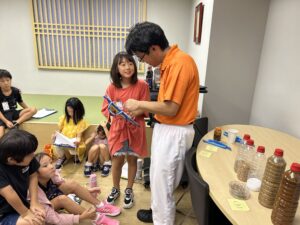 2025/07/08 チャンギ校学校行事工場に潜入!? 3年生 3年生は、見学時の注意事項を確認した後、原料が醤油になるまでの過程を工場ラインを追いながら見学させていただきました。 途中、試食も交えながら、視覚、味覚、嗅覚で、醤油について詳しく学びました。子供達からの質問もどんどん出て、とても意欲的です。