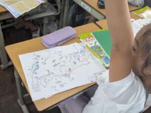 こんな時に活躍するのは副読本「わたしのたちのシンガポール」です。ガーデンバイザベイの場所を決定付けるのに、資料にあるMRTの駅名やマリーナベイサンズと共に映っている写真を根拠に挙げていました。調べ学習は楽しいですね。