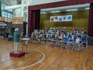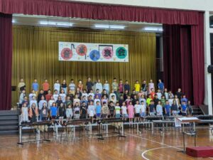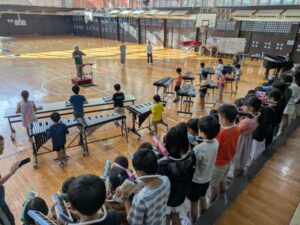 やはり音楽室とは違い、会場が広いので、音の響きも変わって聞こえてきます。感心したのは、手元の楽器ばかりではなく、指揮をしっかりと見て演奏しているところでした。また、歌の方も大きな声でしっかりと歌えていました。