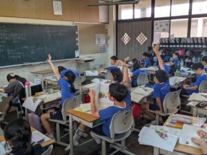 子供達はそれぞれの生活経験も生かして話し合うことでさらに理解を深めていました。また、河﨑先生の「それがブティキマ山にあったらどう?」という切り替えしもなかなか効果的でした。