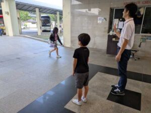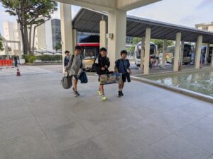 しばらくして、後方から元気のよい男の子の声が聞こえてきます。何と、福森教頭先生と並んで、3年生の一人が主体的に挨拶運動を始めたのです。そして「今日は95人だった」と呟いています。何と、彼は挨拶を返してくれた数をカウントしていたのでした。