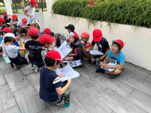 校外に出て見たり聞いたりする物全てが新鮮です。子供は目を輝かせながら見つめ、また発見したことを懸命にメモしたりしていました。次回もとても楽しみですね。