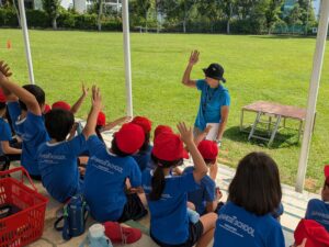 最後に、体育の岡﨑先生から「去年の自分よりタイムが速かった人は?」と聞かれ、多くの子供達が手を挙げていました。次回は、ソフトボール投げに挑戦します。