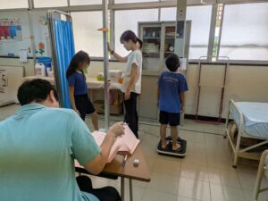 2025/04/22 チャンギ校学校行事発育測定しています今週から来週初めにかけて、学年ごとに発育測定を行っています。 どの学年も約束を守って、順番に計測してもらっています。どのくらい大きくなったか、またこれからどれだけ大きくなるか楽しみですね。