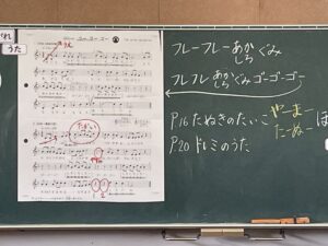 日本国内でもよく歌われていますが、違う旋律を同時に歌うのは難しいので、あえて同じ旋律を歌わせ、色団を言うところだけを変えるということがなされます。実際に自分もそのように指導してきました。