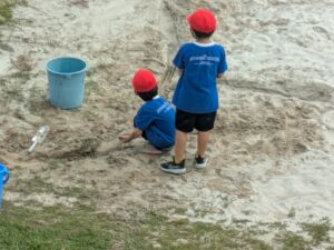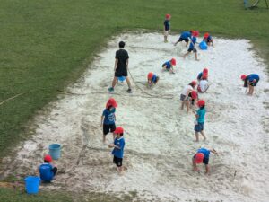 担任の板本先生によると「水の吸収が日本の5倍程速いので、固めて作るのが難しいですね」とのこと。バケツで水を汲みに行き来する子供達も大変そうではありましたが、にこやかな笑顔を見せていました。