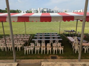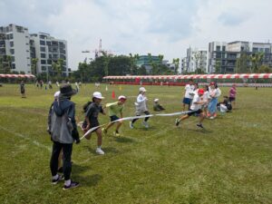 雨の予報も出ていますが、5・6年生は予定通りに前日準備を行いました。スローガン「その一歩が伝説となるチャンギっ子」も掲げられるとともに、決勝審判などの練習もしっかりと行われました。