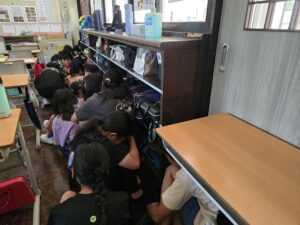 不審者対応の避難訓練は、前回の自然災害の避難訓練と同様、教員の指示をよく聞き、静かに待機し、そして素早く避難できました。この訓練で学んだことは、「おはしもち」の約束だけでなく、「自分の命は自分で守る」という強い気持ち、「周りの大人の指示に従う」ということをお話ししました。
