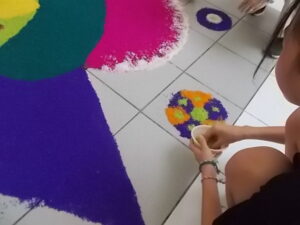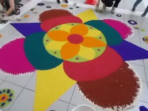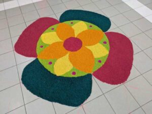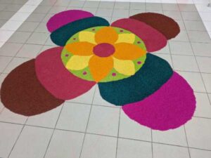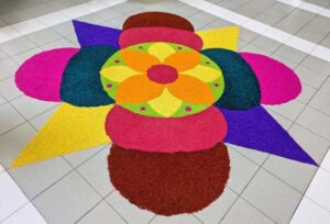 ランゴリ(Rangoli)とは、主にインドで伝統的に行われている、床や地面にカラフルな模様を描く装飾アートです。シンガポールにおいても、インド文化の重要な要素の一つとして親しまれています。
