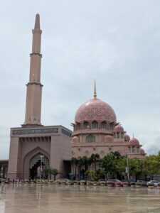 飲茶をいただいた後、プトラジャヤに向かいましたが、また写真撮影のタイミングで雨に見舞われてしまいました。ピンクモスクでは、日本語を話せる方に丁寧にお話していただき、異文化について学びました。