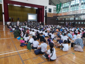 本日は、2年生がアンサナ校の友達と交流を行いました。まず、体育館に集合し、互いに自己紹介やカード交換をしました。