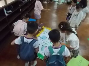 日本国内では、生活科の学習として、2年生が1年生を招く活動を数多く見てきました。しかし、異文化交流として英語での応対が加わることで、コミュニケーションの難易度は格段に上がっています。それを堂々とやり遂げるチャンギっ子。その姿は、何とも誇らしい限りです。