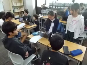特に目を引いたのは、聴衆として参加した6年生の姿です。6年生は、発表内容の分かりやすさや分析の深さ、表現力を基準に、シールポイントで5年生の発表を評価しました。その真剣な眼差しは、まさしく審査員そのもの。