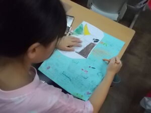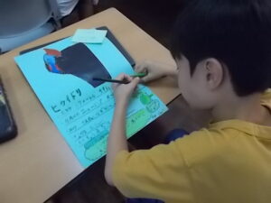 子供たちは、実際に観察したことを踏まえ、クイズ形式で紹介する活動に取り組みました。図鑑で見た情報と、自分の目で見て発見した「なぜだろう?」という疑問を織り交ぜながら、個性豊かな「自分だけの図鑑づくり」につなげていました。