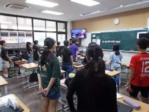 最後に、全校で元気よく校歌を歌い、心温まる雰囲気で集会を終えることができました。