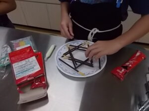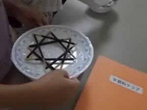 家庭科クラブでは、市販のお菓子を組み合わせて創造性を育む活動に取り組みました。この日は、子供たちに人気の「ポッキー」を使って、星型のオーナメントやリースを作る活動を実施しました。