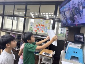 4年生が、東京の元加賀小学校とオンラインでの交流学習を行いました。これは探究「シンガポール探検2」のまとめの取組として行ったものです。