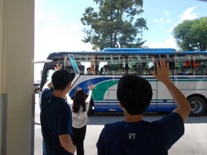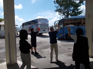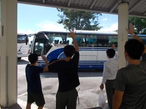 「元気でね」「また会おうね」と、一人でも多くの教職員で門出を祝し、再会する子供たちとも心のつながりを確かめ合うように手を振り続けました。バスの窓越しに見える子供たちの笑顔が、新しい場所でも輝き続けることを確信しています。