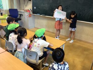 1月14日に、日本人幼稚園の年長さんと交流会をしました。新1年生として4月に入学して来る幼稚園生が、安心して小学校に来られるように、学校を案内したり、一緒にダンシング玉入れをしたりしました。お兄さん、お姉さんとして頑張った1年生!もうすぐ2年生になる自覚も芽生えた楽しい一日になりました。